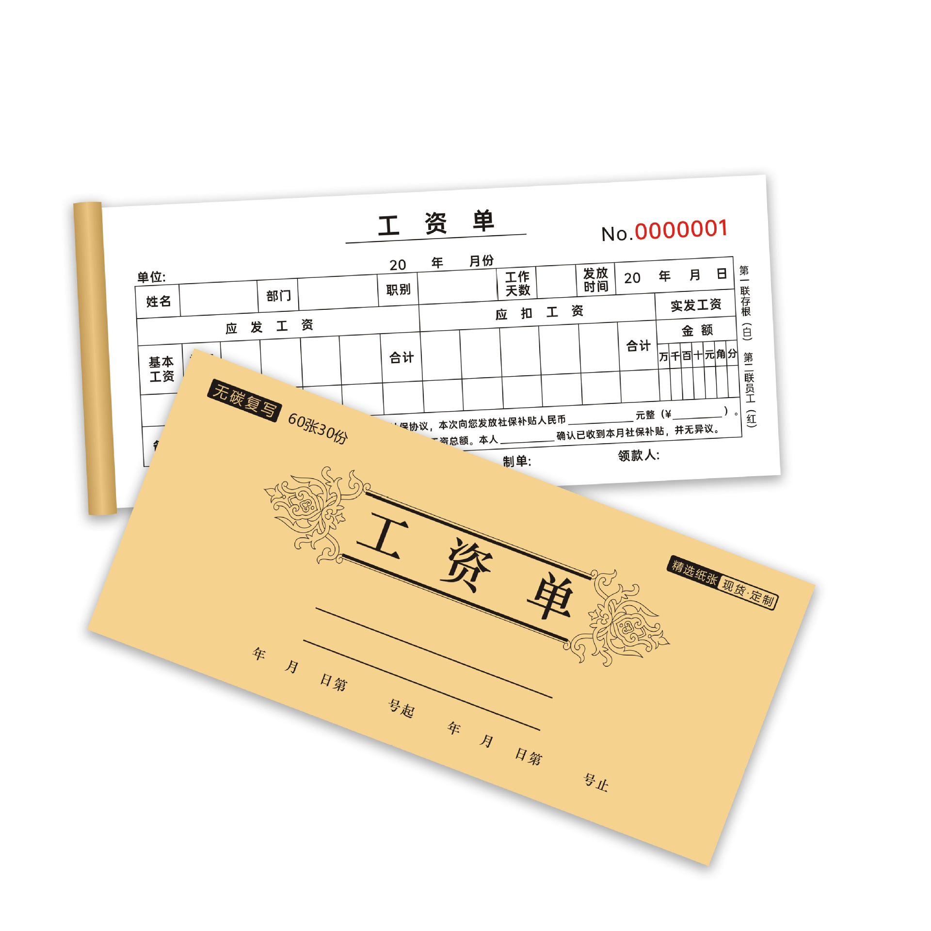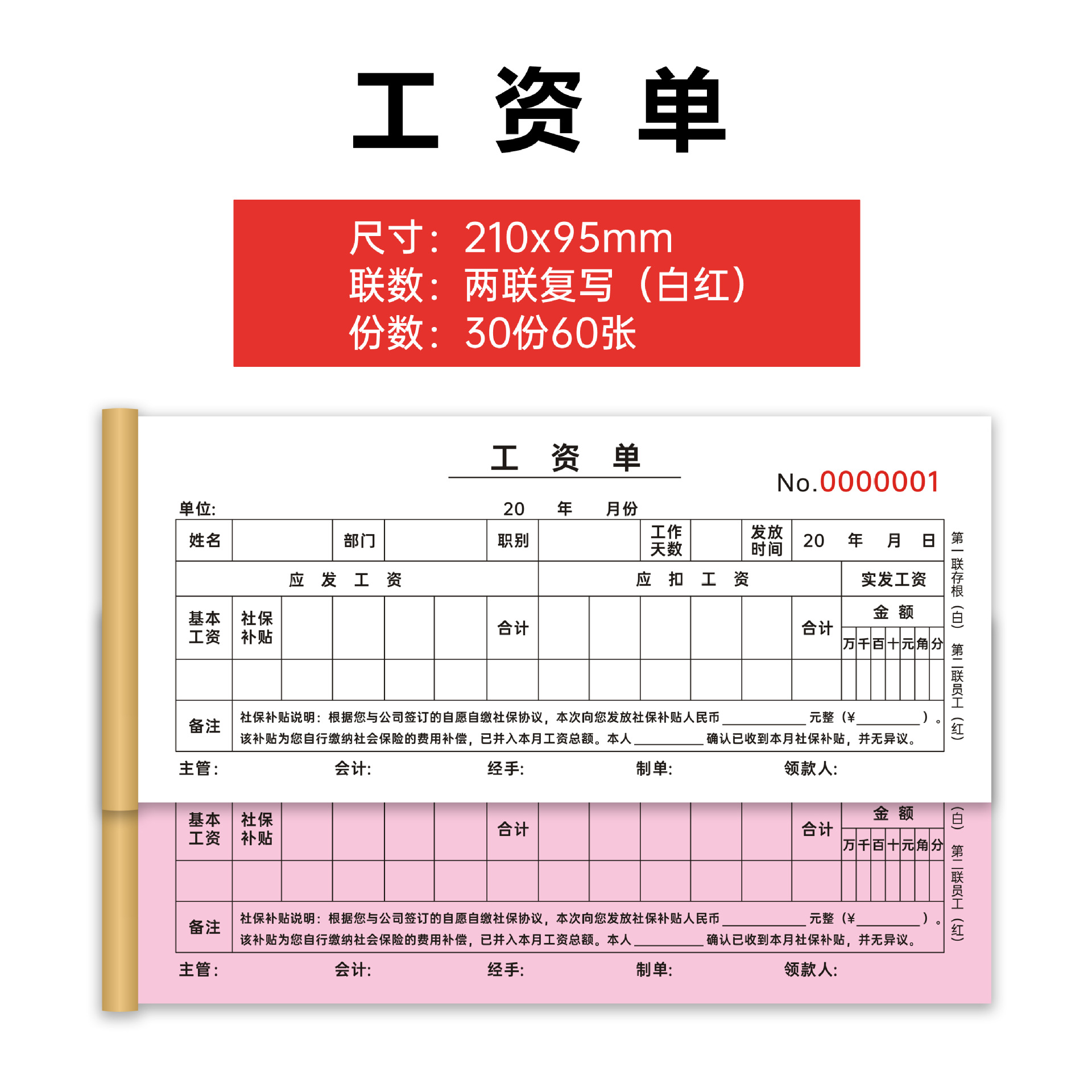 2025年新带社保补贴说明工资单两联复写工资发放单员工领取薪水条