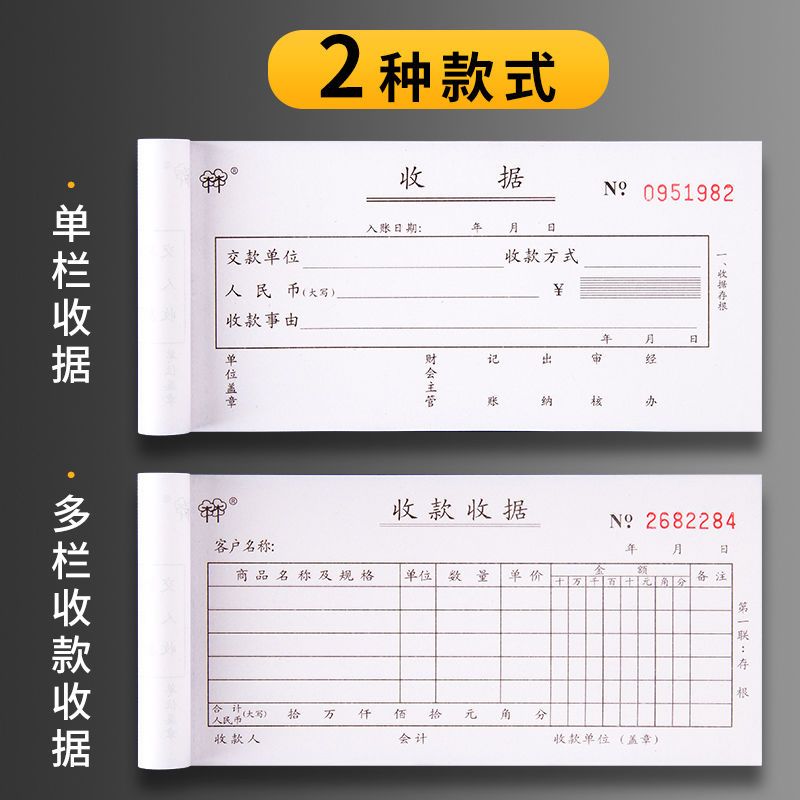两联二联三联多栏收据单收款收据单栏收据本现金收剧单据无碳复写