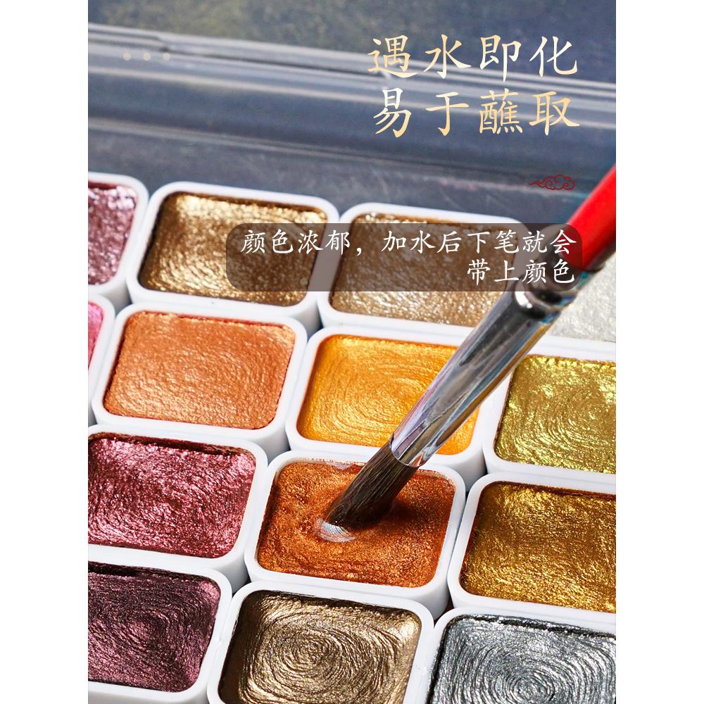 画尽繁华珠光水彩颜料固体分装套装国画唐卡涂色美术专用24色敦煌水彩书法美甲水彩画填色水彩绘画珠光颜料