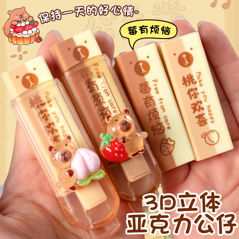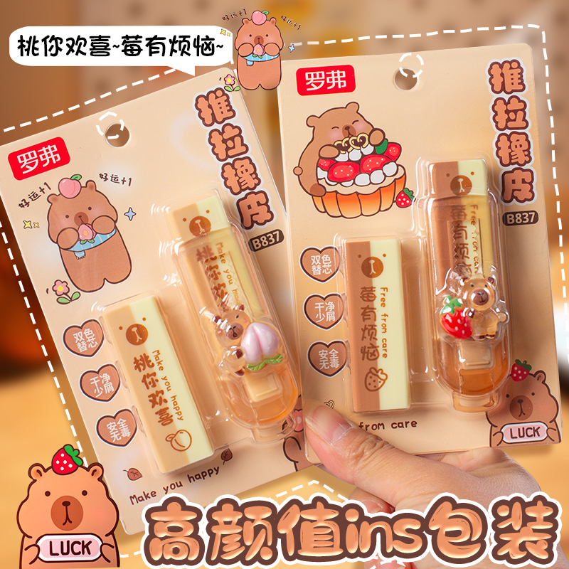 网红卡皮巴拉推拉橡皮擦小学生专用无屑干净儿童幼儿园推动式橡皮可换替芯高颜值ins风可擦笔专用伸缩像皮擦