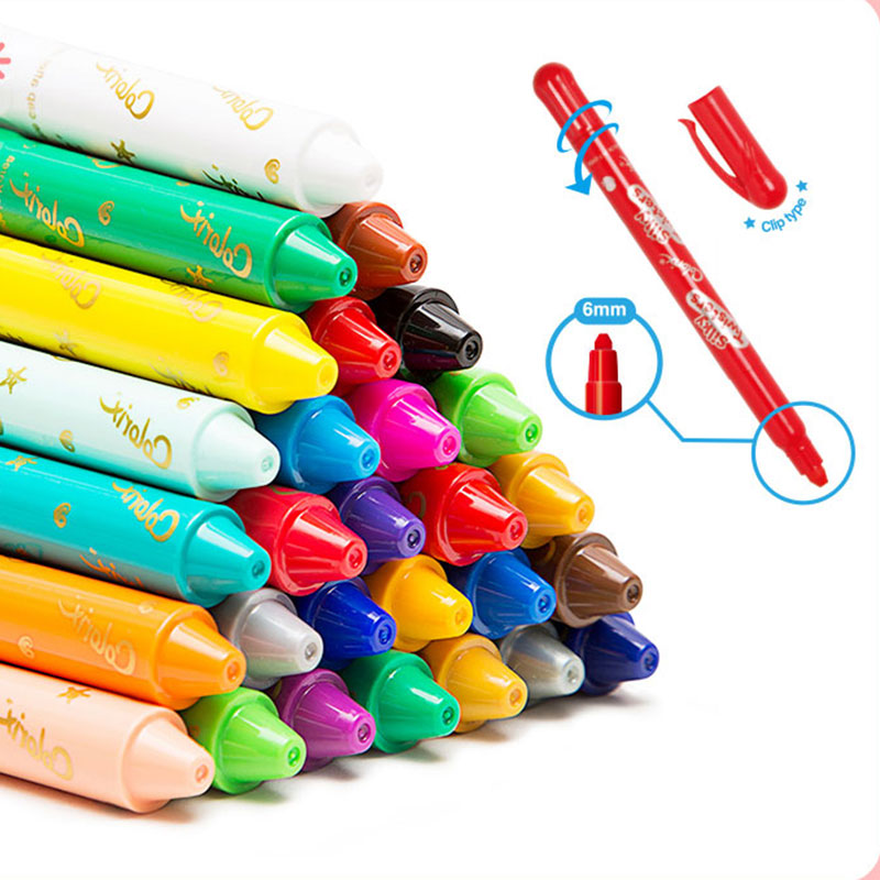 不脏手塑料蜡笔儿童安全画笔幼儿园专用可水洗宝宝36色桶装油画棒