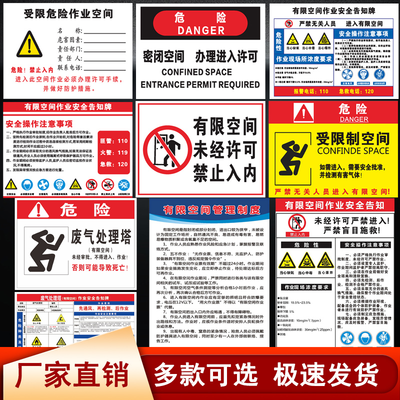 有限空间作业安全告知牌受限空间作业危险警示牌循环水池消防水池蓄水池化粪池冷库污水处理池安全警示标识牌