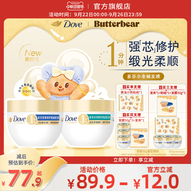 【重磅升级】多芬氨基酸小金碗发膜护发素一分钟柔顺修护品牌正品