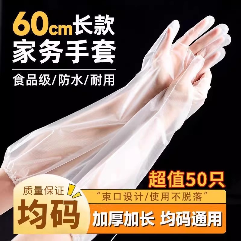 一次性加厚耐磨手套束口加长版洗碗厨房耐用贴手防水家务防护手套