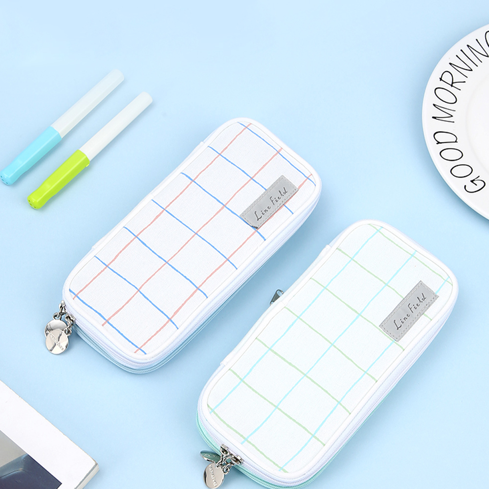 【自营】KOKUYO国誉笔袋大容量双拉链格子印象·多层简约笔袋淡彩曲奇NOViTA-R男女小学生多功能铅笔袋收纳包