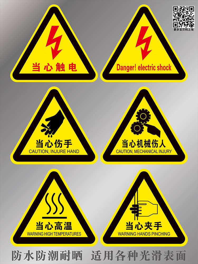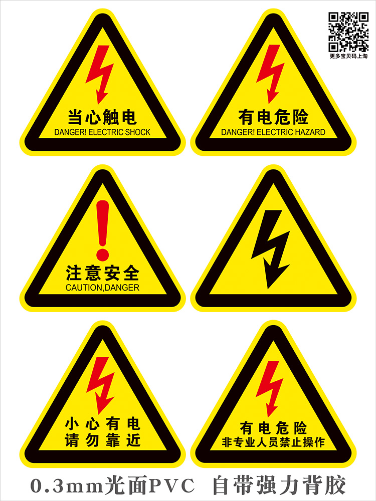 当心触电警示贴小心有电危险提示牌机械设备安全标识贴纸配电箱闪电标志贴消防标牌警告三角形高压注意用电标