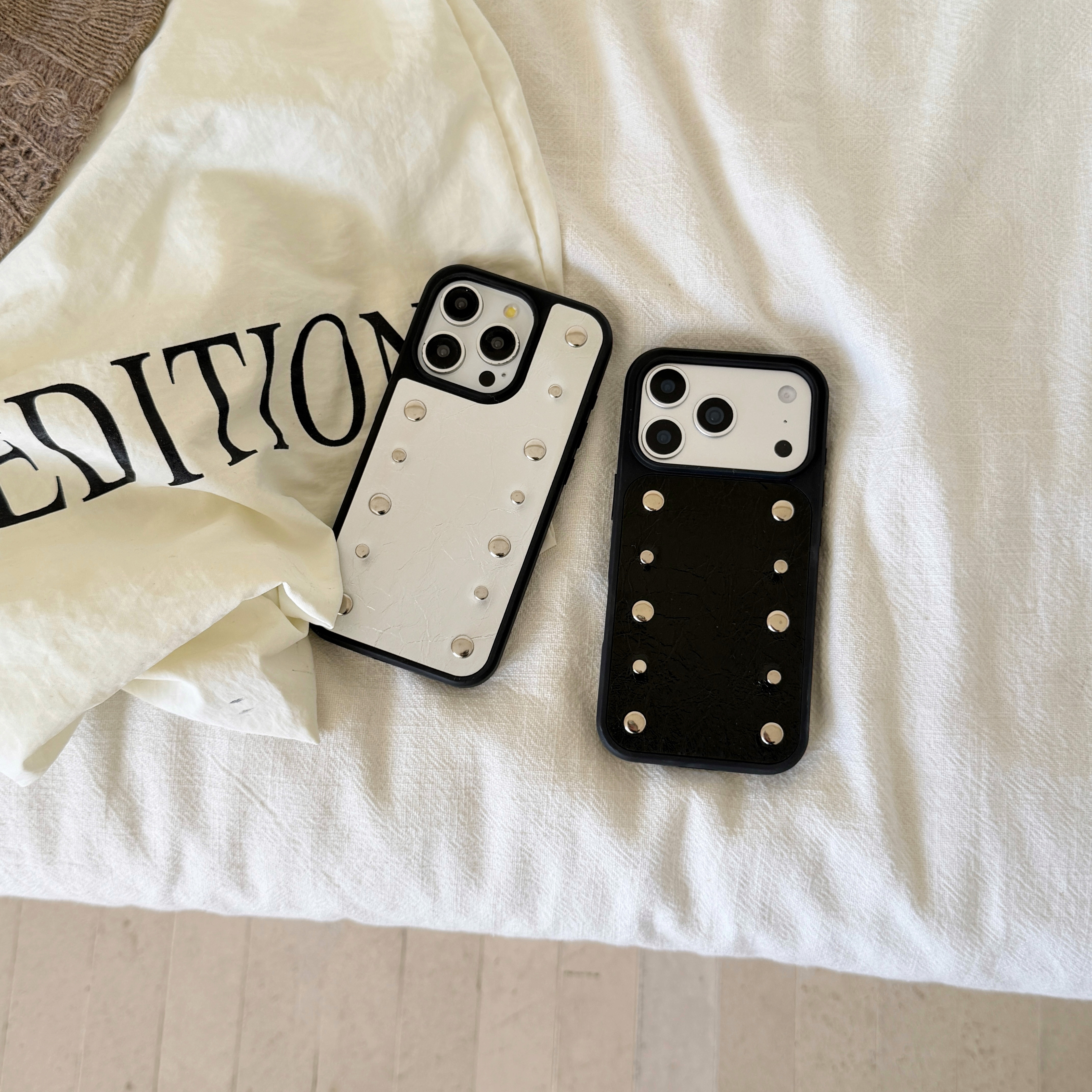 在春日小众甜酷时髦铆钉皮质手机壳17适用iPhone17promax全包新款16promax苹果挂绳保护壳15pro/14中性16pro