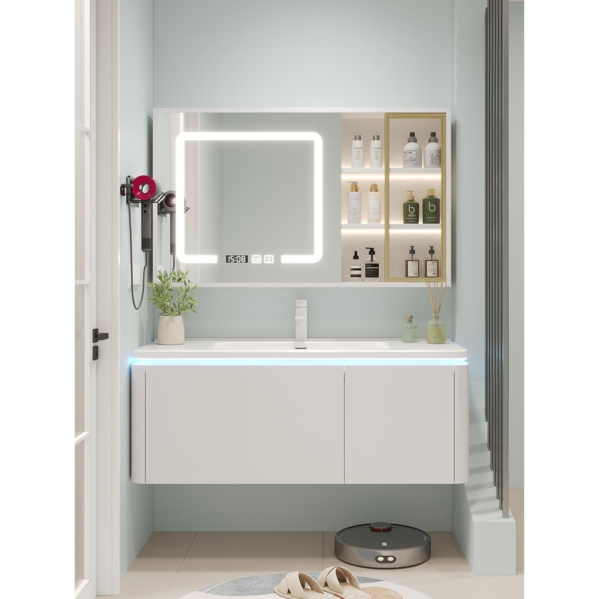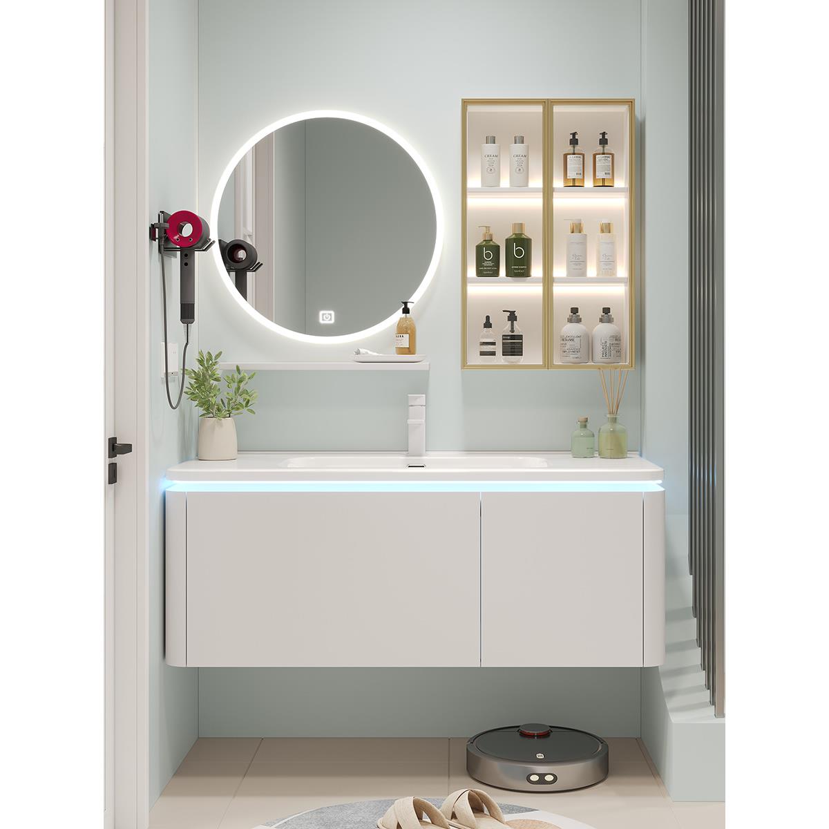 奶油风陶瓷一体盆智能浴室柜组合圆角洗手洗脸盆卫浴卫生间洗漱台饰品