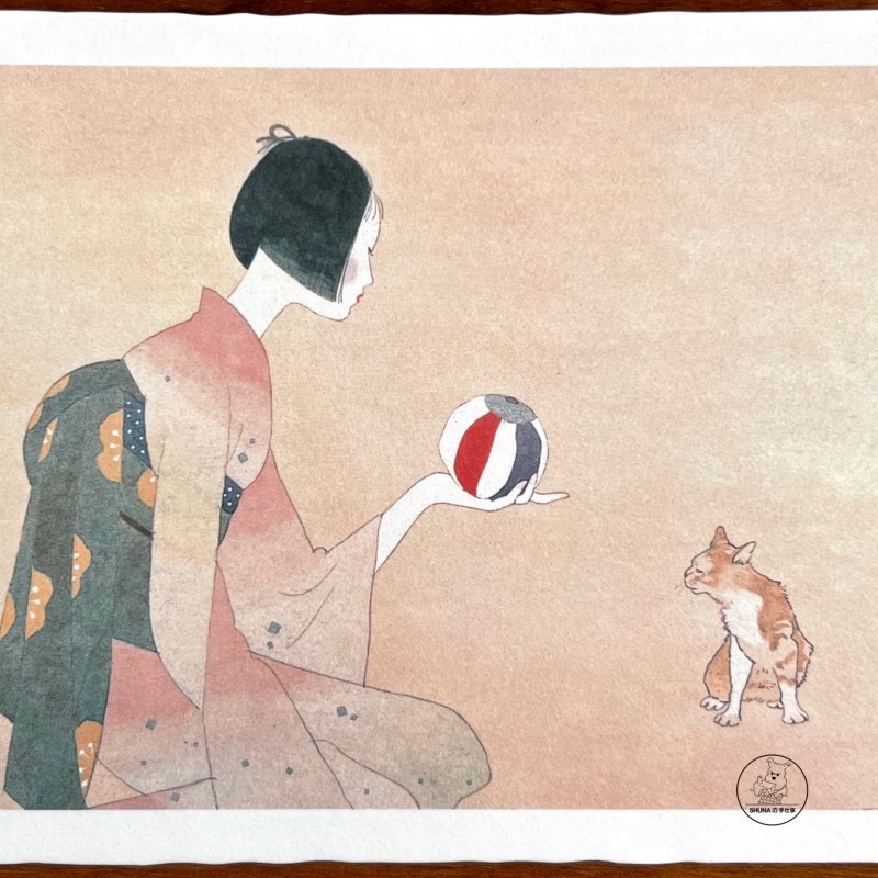 「SHUNA」纸气球和猫 日本原版治愈系美人画大师林静一明信片