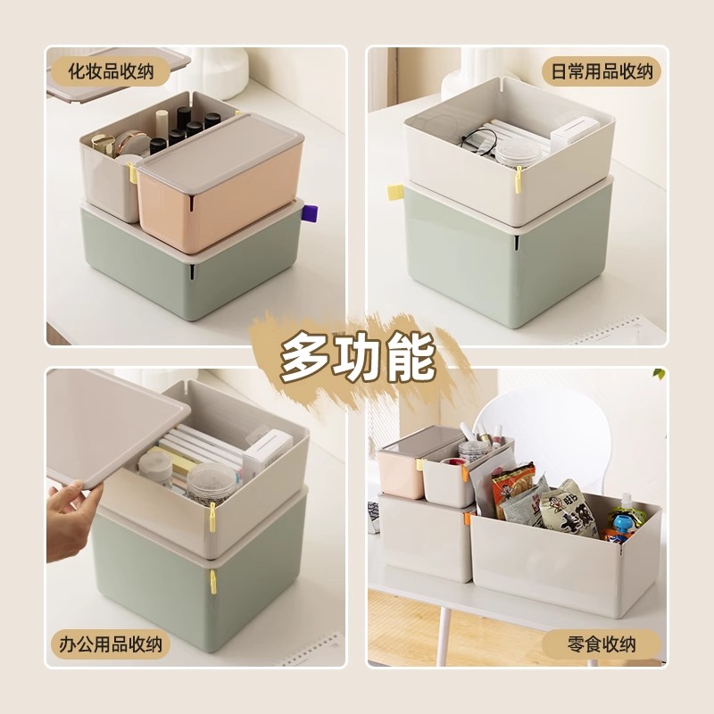 得力桌面收纳盒家用置物盒零食玩具整理盒杂物整理篮塑料筐加大置储物盒收纳箱高颜值塑料收纳抽屉