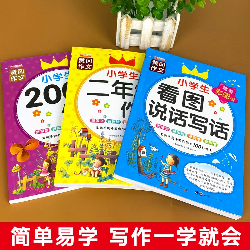 小学生二年级作文书大全3册作文起步带拼音的200字黄冈人教版同步小学必读阅读2年级上册看图写话训练入门范文写作练习好词积累