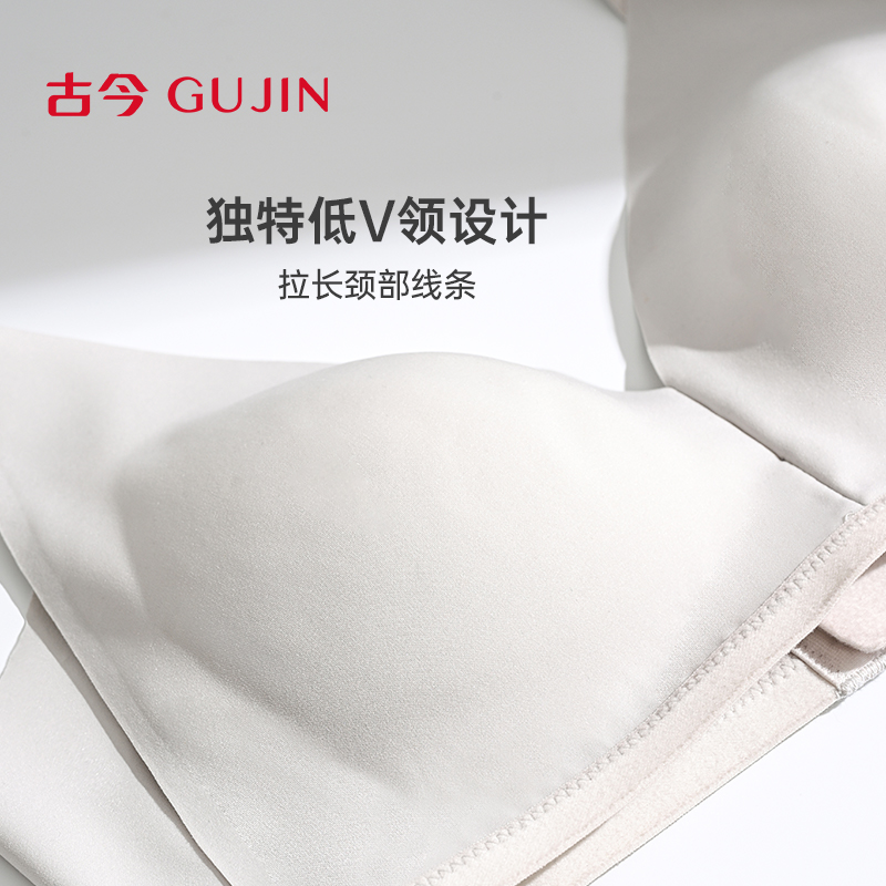 古今内衣女AA显瘦无钢圈小胸微聚不空杯低V领无痕光面百搭文胸罩