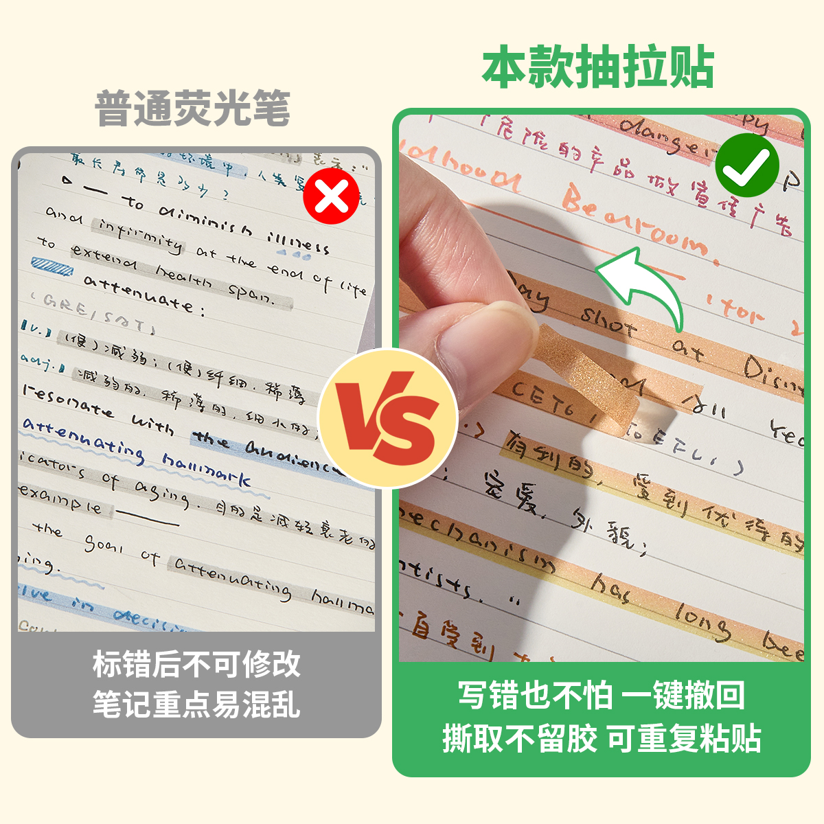 卡皮巴拉抽拉式便利贴学生用错题订正便签纸有粘性初中生可爱横线学习办公神器小学生专用高颜值标签贴粘性强