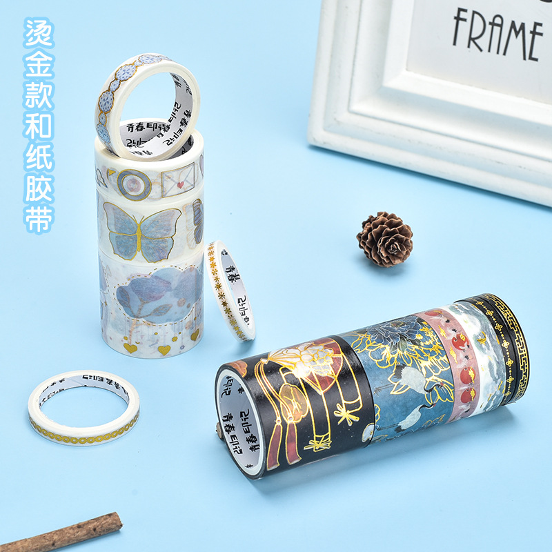 创意烫金和纸胶带国古风动物海洋花草手账贴彩色胶带