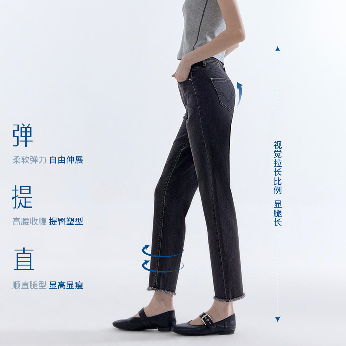 李李服饰线条刺绣微喇牛仔裤女2025秋季新款设计感高腰显瘦弹力裤