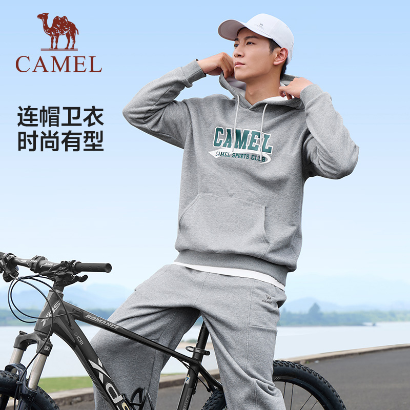 骆驼男装短款秋冬清仓运动休闲上衣男加绒套头长袖宽松连帽卫衣女