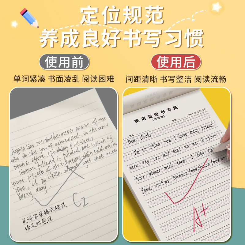 思进英语定位纸练习书写纸小学生初中生英文作文纸专用练字高中生衡水体英文簿听写单词规范书写格子16k抄写