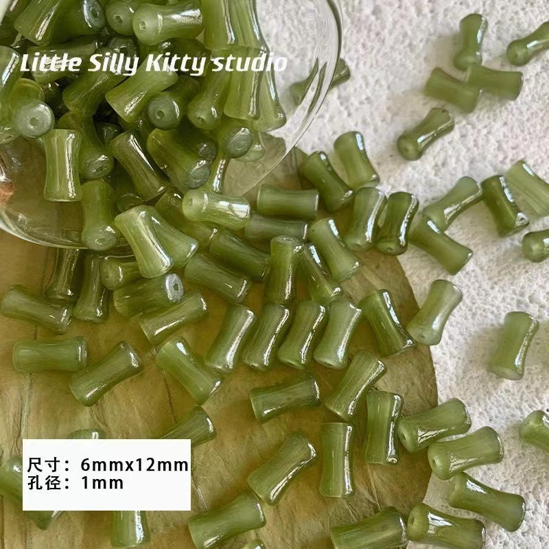 新中式国风竹节算盘仿玉石玻璃散珠diy串珠手链项链手作配件材料