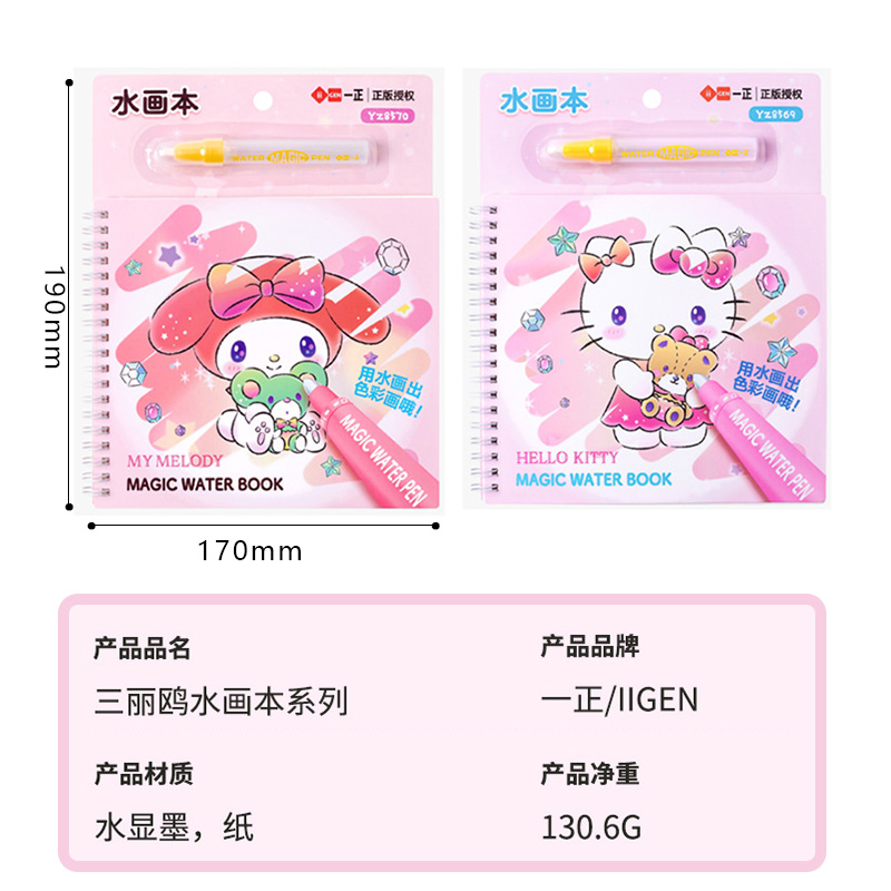 一正凯蒂猫水画本儿童卡通涂色本美乐蒂神奇水画册反复涂鸦清水作画幼儿园奖励卡通图画本