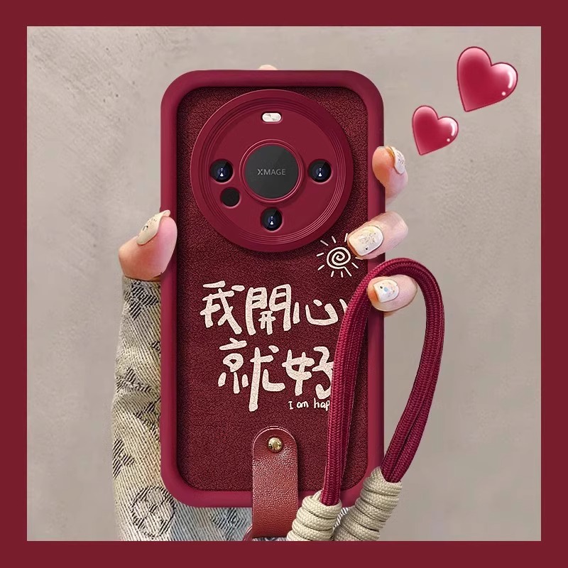 我开心就好小羊皮带挂绳适用华为mate70pro+手机壳新款mate60保护套mt30全包防摔50红色喜庆新年款M40E女高级