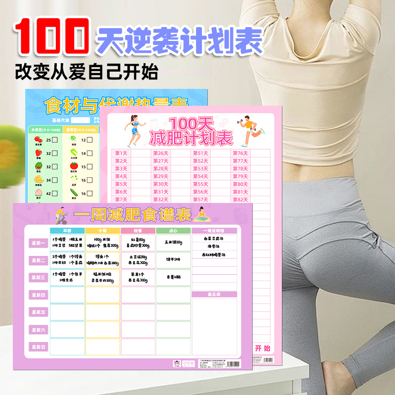 120天减肥体重打卡计划表墙贴60天健身自律百天瘦身百日减重提醒监督神器励志挂墙自我体重变化管理日记录表