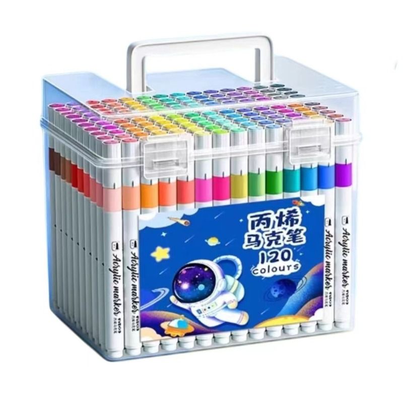 60色48色大容量丙烯马克笔盒装儿童专用可叠色不透纸幼儿园学生版软头丙烯笔可水洗水性水彩笔小孩画画笔
