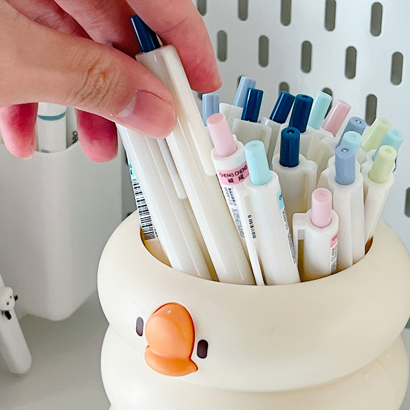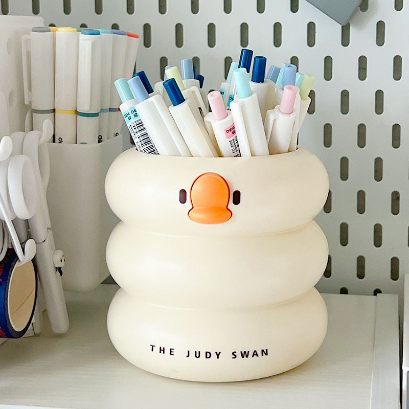 小鸭笔筒可爱卡通大容量桌面收纳盒笔盒马克笔收纳桶化妆笔收纳盒