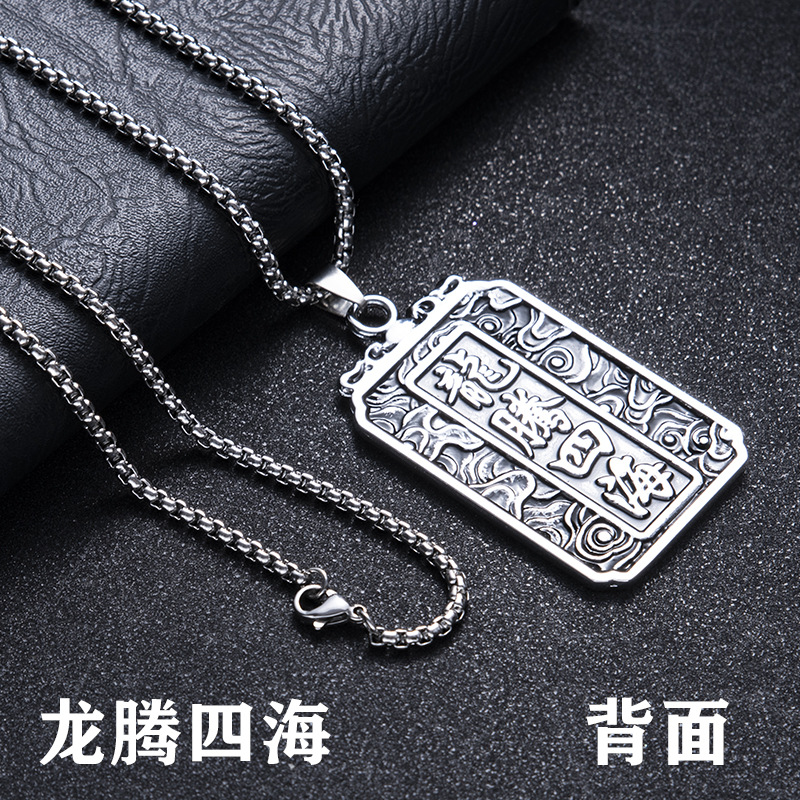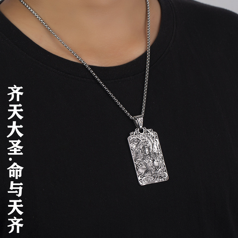 齐天大圣孙悟空镀银项链男吊坠男士霸气斗战胜佛宝挂件蛇骨链镀金