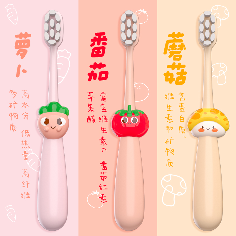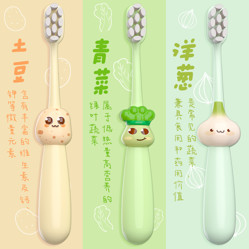 萌趣蔬菜联盟儿童软毛牙刷温和清洁呵护牙齿3-12岁男女宝训练适用