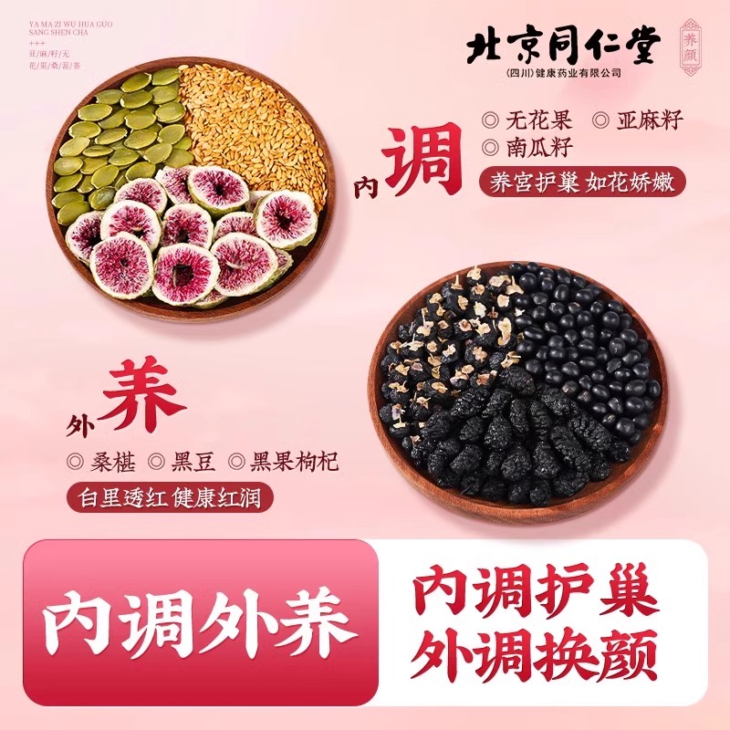 亚麻籽无花果黑豆黑枸杞桑葚黄体酮种子循环养生雌茶包北京同仁堂
