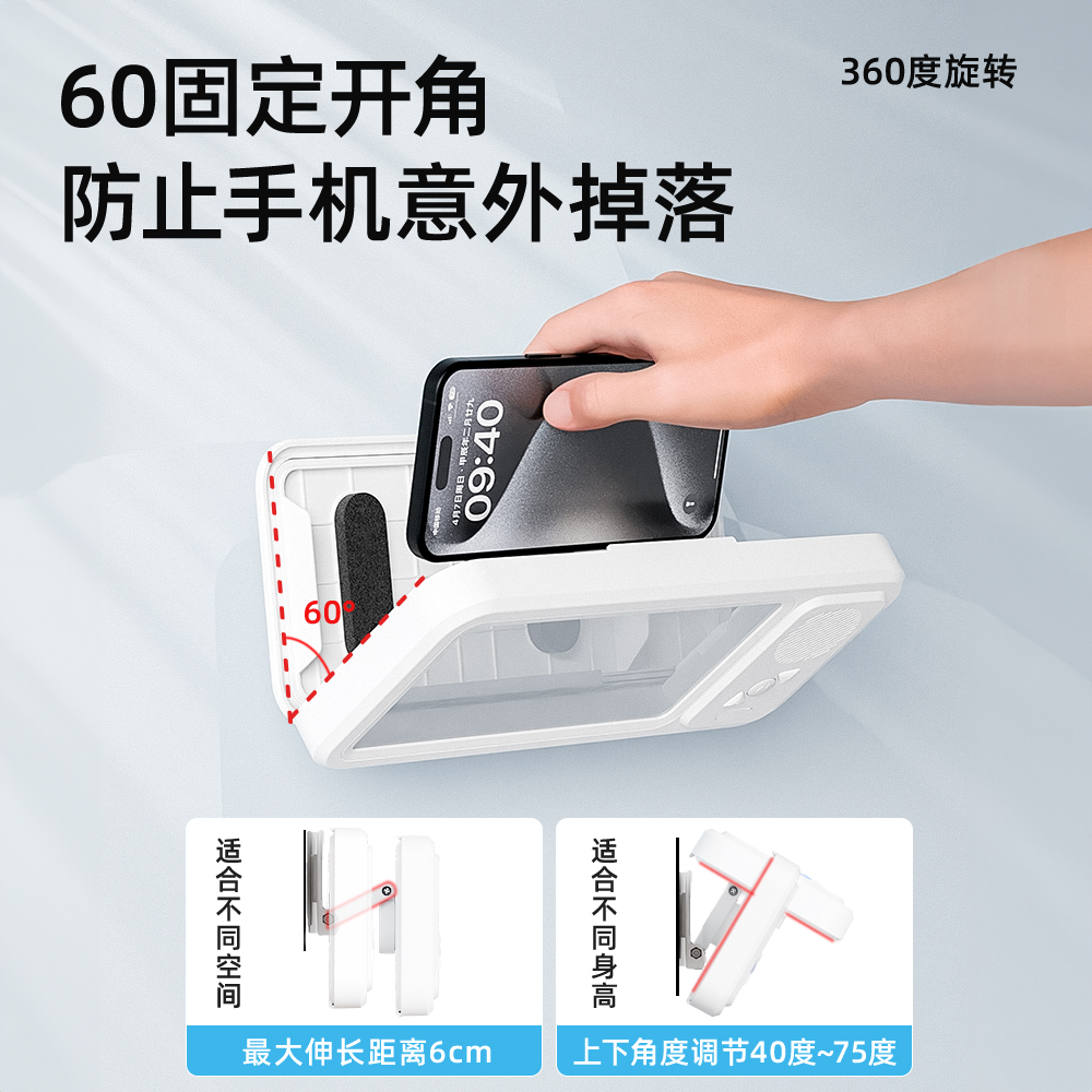 Umimile浴室手机架防水盒蓝牙音箱卫生间洗澡追剧看手机神器浴室专用手机懒人支架可触屏旋转防雾厕所置物架