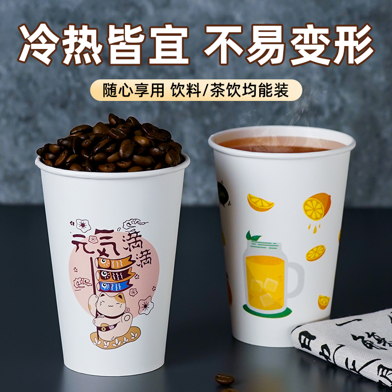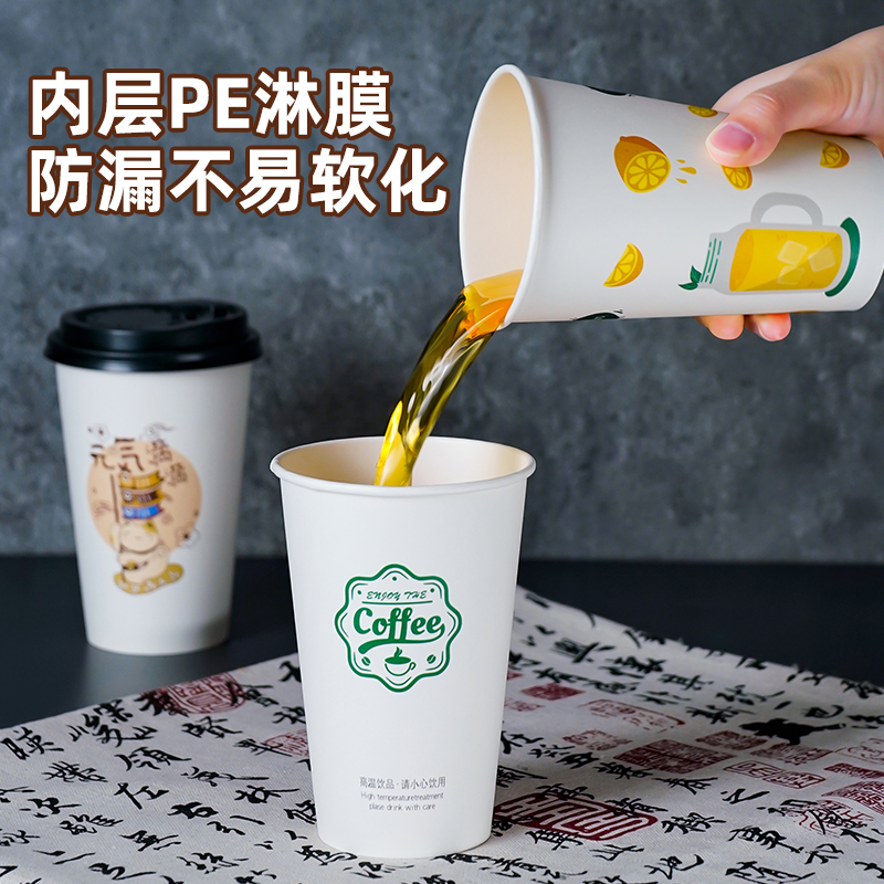 咖啡杯一次性商用带盖加厚纸杯奶茶豆浆耐高温热饮打包杯食品级