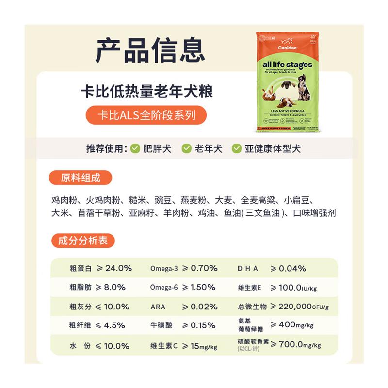 卡比(CANIDAE)狗粮低脂低卡老年肥胖犬粮 肠胃呵护中大型控制体重