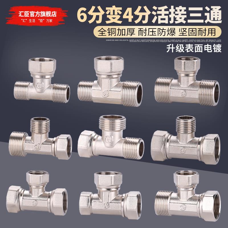 全铜6分转4分变异径带活接三通一分二路热水器水管分水器接头配件