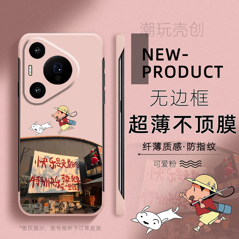 适用华为PURA80手机壳P60快乐70是免费蜡笔小新P50PRO超薄无边框40半包不顶膜MATE60PRO新款MATE50RS防摔硬壳