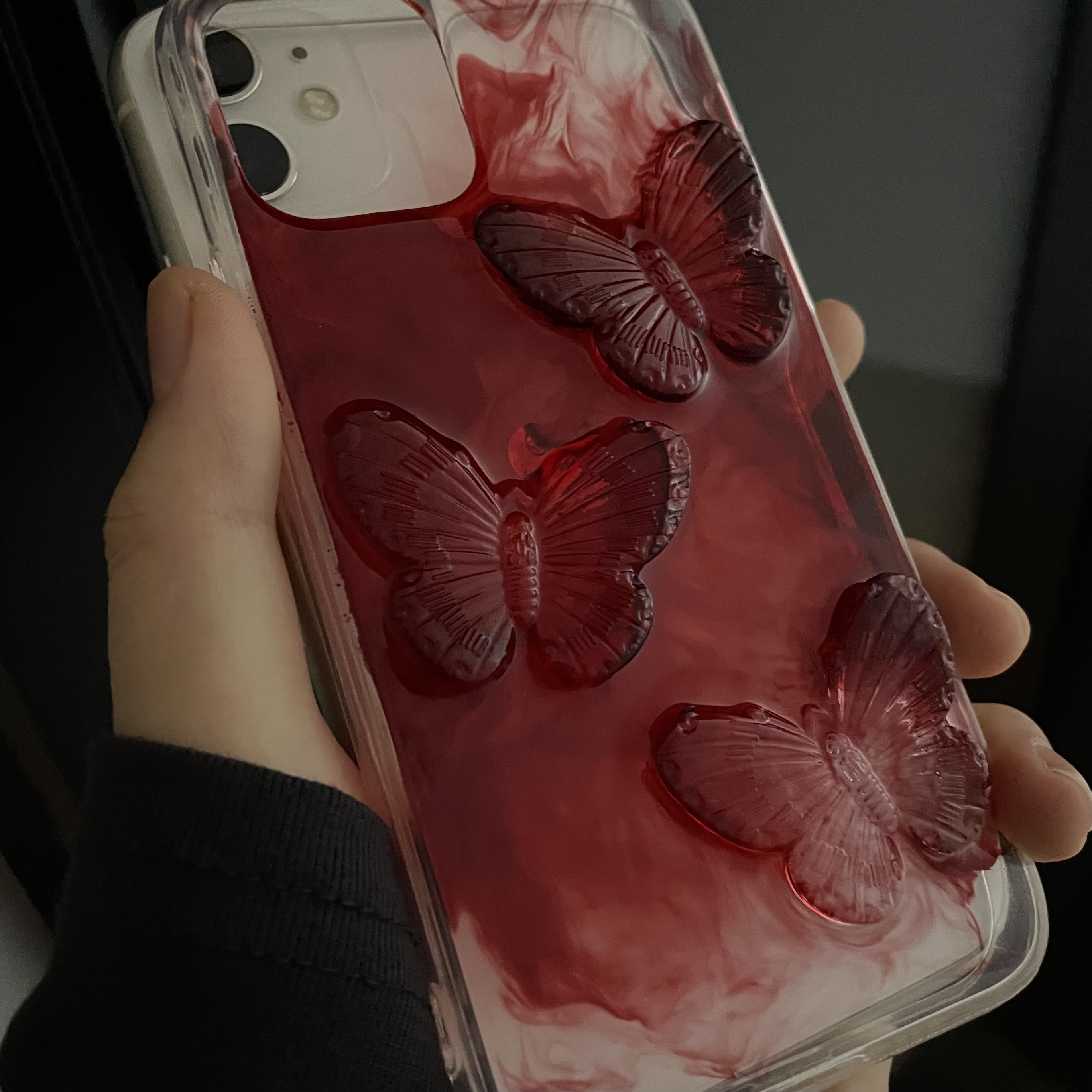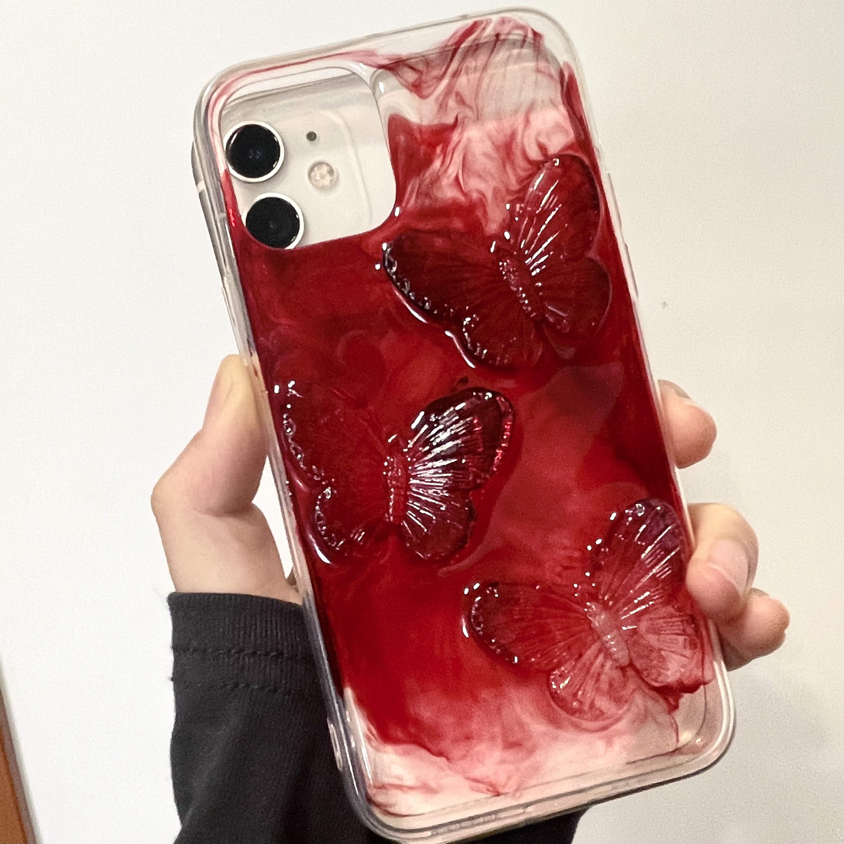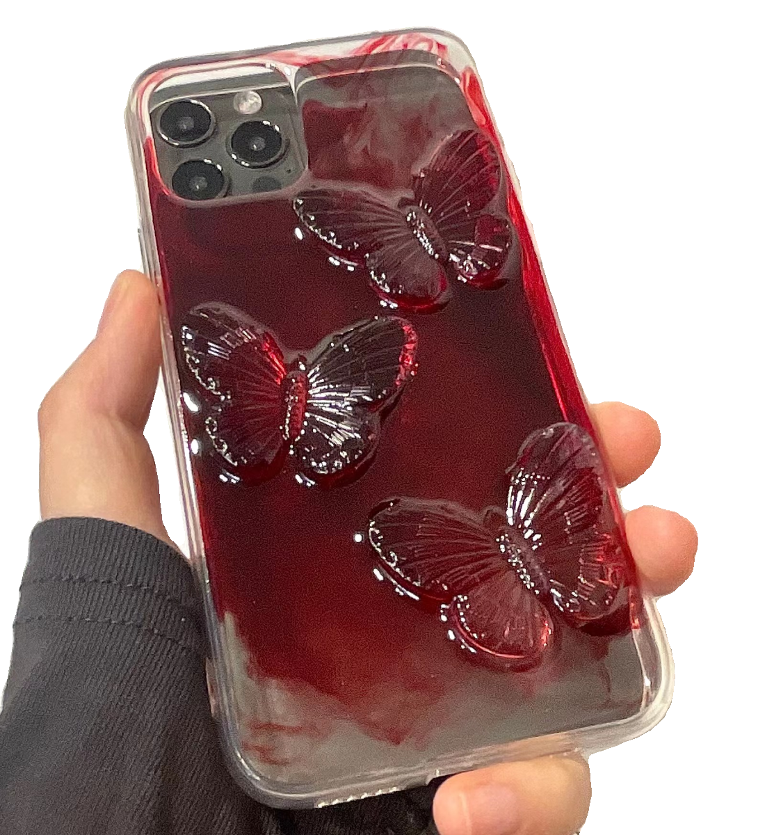 NINGMENG原创恐怖暗黑血色暈染血腥蝴蝶手机壳适用于苹果11 12 13 14 15promax安卓14Pro 13Pro