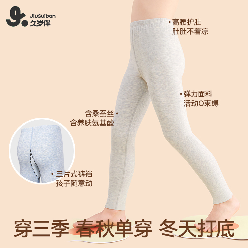 久岁伴儿童保暖裤男【蚕丝羊毛双面绒】加厚发热中大童小孩秋裤