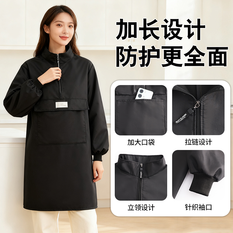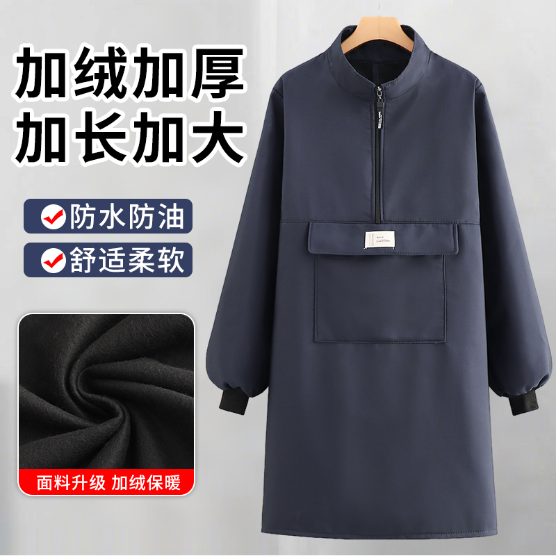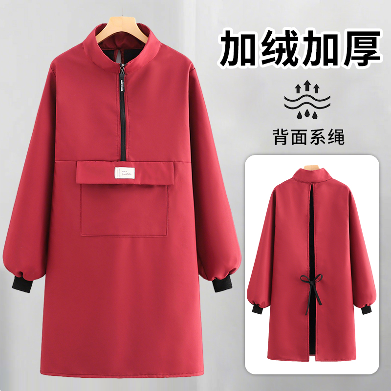 冬季加绒罩衣大人加厚长袖围裙防水韩版女时尚外套家用工作服