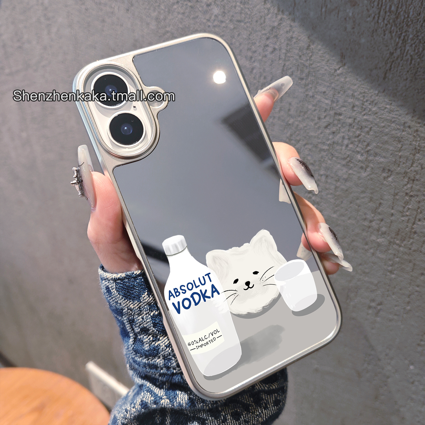 伏特加喝酒小狗17promax手机壳磁吸带镜子韩系插画猫咪适用苹果16简约15plus小众好看iphone14少女风13promax