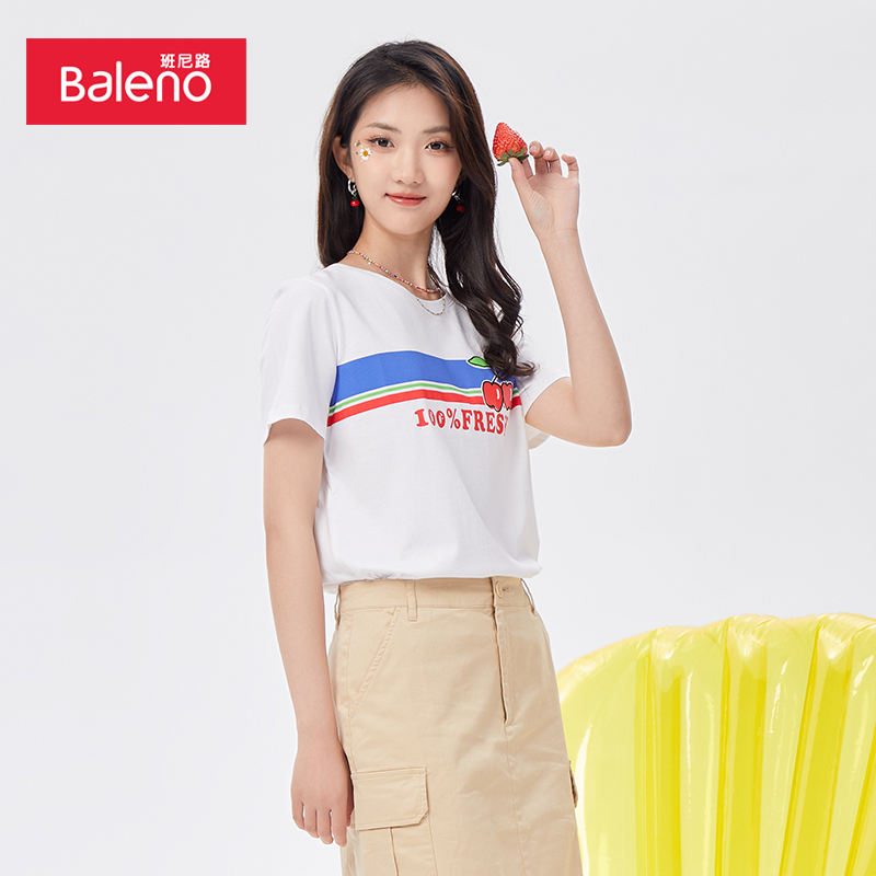 班尼路女装纯色印花圆领印花T恤夏季新款潮流百搭短袖t恤女百搭