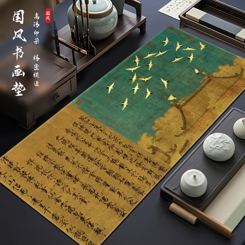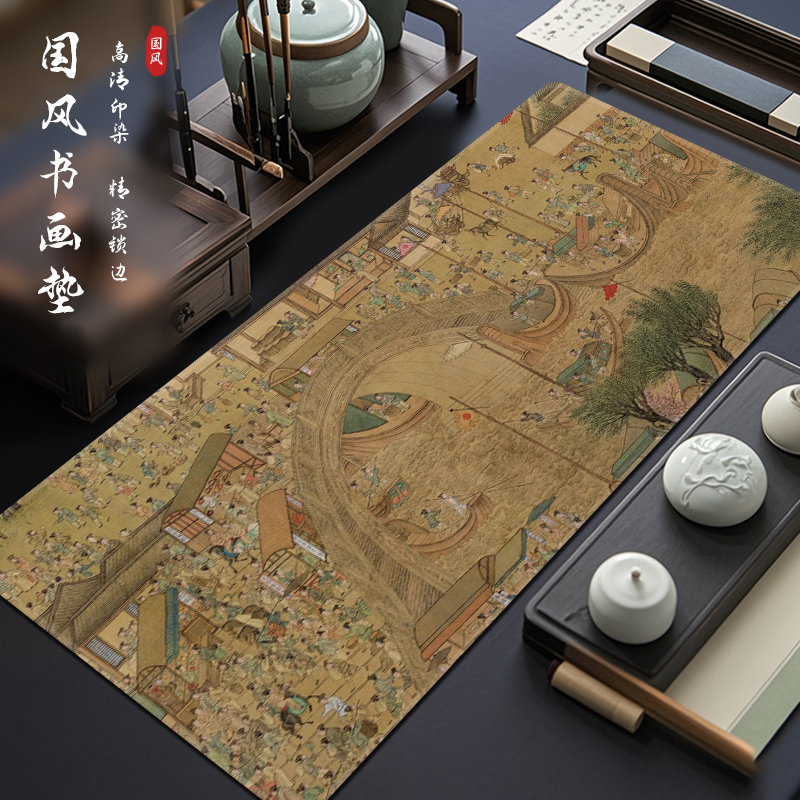 千里江山图鼠标垫超大中式美学古风工位电脑桌垫家用写字台滑鼠垫
