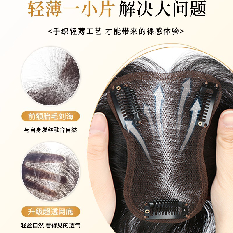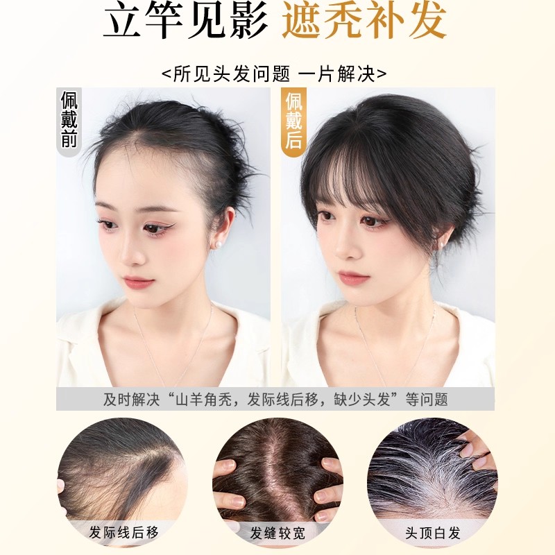 刘海假发女片头顶真发补发高颅顶增发量蓬松遮白发自然无痕假刘海