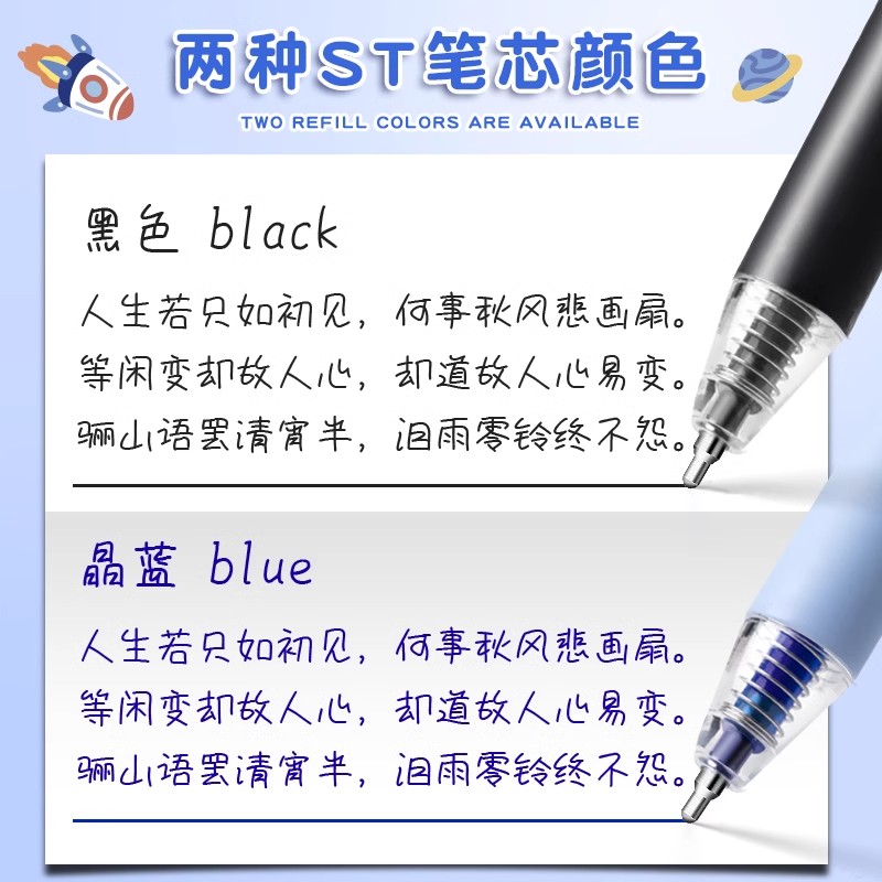 按动可擦笔中性笔小学生专用男孩三年级热敏可擦魔力擦速干按动复写笔高颜值蓝色黑色晶蓝笔芯摩易擦可擦水笔