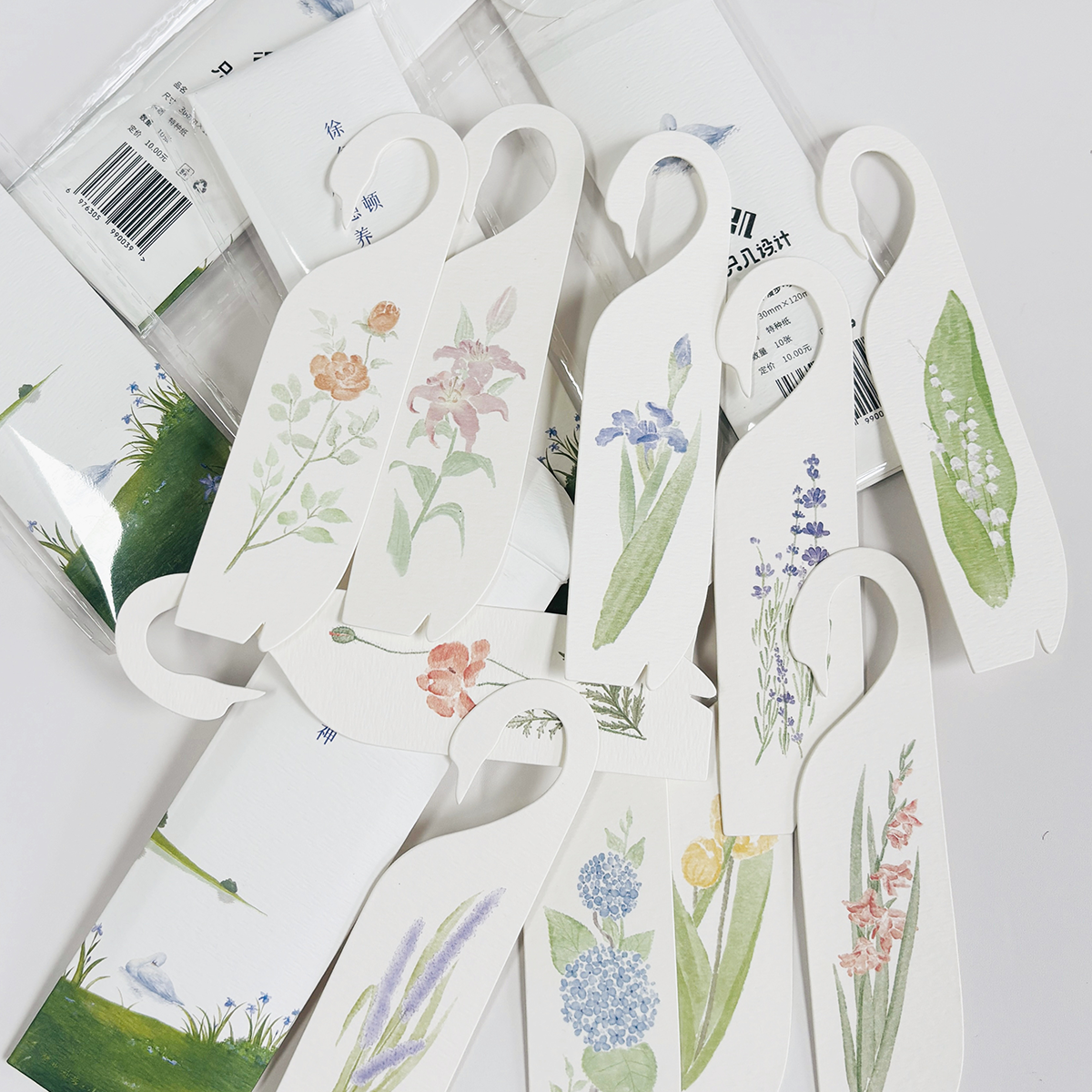 只几设计 | 高颜值创意天鹅颈书签套装 花卉绿色复古文艺便签套装