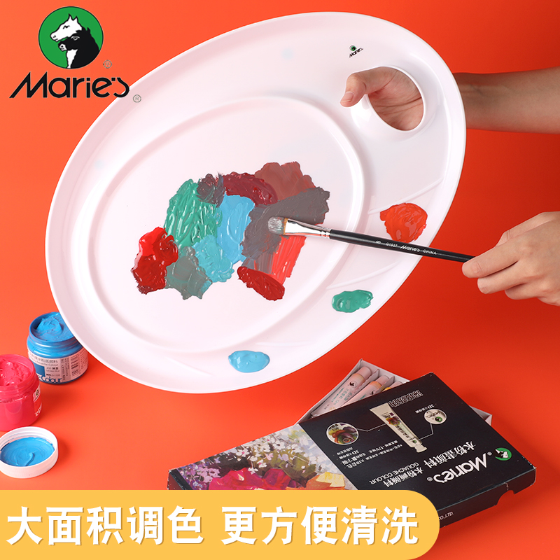 马利牌水粉调色盘H026大号椭圆画画调色板水粉盘水彩H026颜料盘学生儿童丙烯颜料国画H1030调色盘塑料梅花形