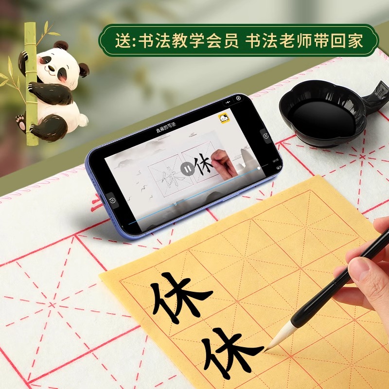 得力毛笔字初学书法套装初学者入门专用狼毫兼毫小学生水写布笔墨纸砚练字全套文房四宝套装初学者文房用品