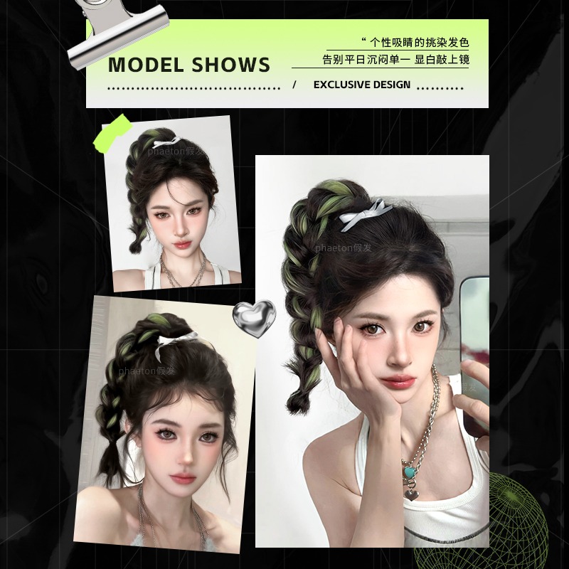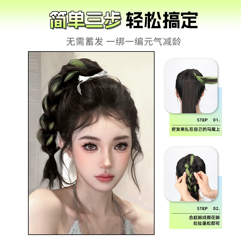 假发辫子挑染马尾多巴胺麻花辫量彩色发束假发圈儿童编发神器增加