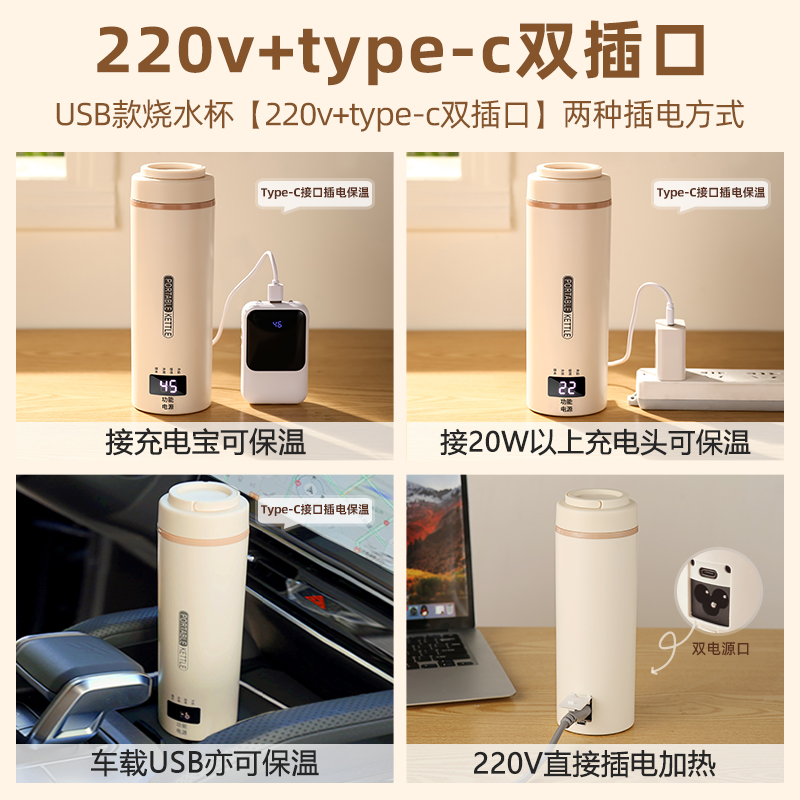 便携式烧水壶USB恒温保温旅行烧水杯宿舍热水壶电热杯充电电加热