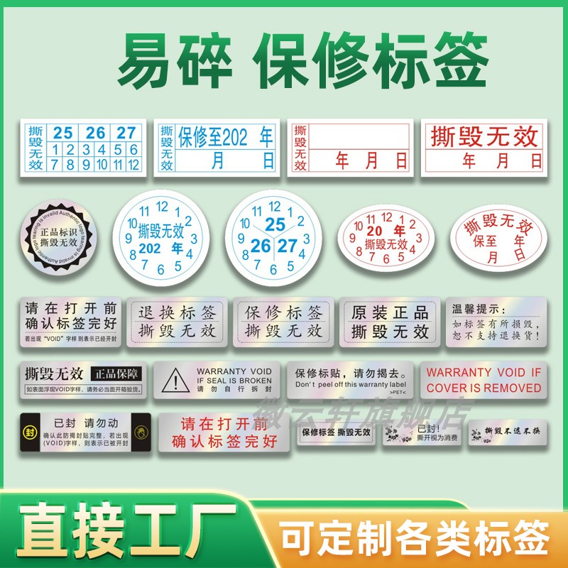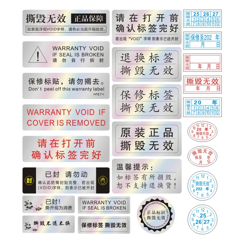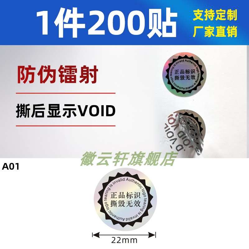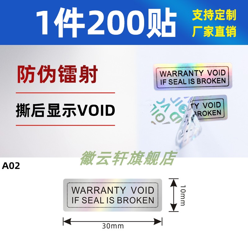 void防拆防伪标签一次性镭射封条撕毁无效易碎封口贴封箱贴纸撕毁无效易碎标签贴纸防拆防撕一物一码标贴