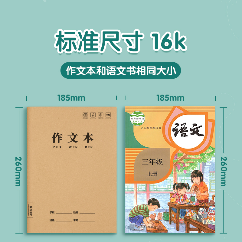 作文本400格小学生专用三年级16K牛皮纸作业本子语文本记事本作文簿四五六年级上册300格大作文方格本薄初中